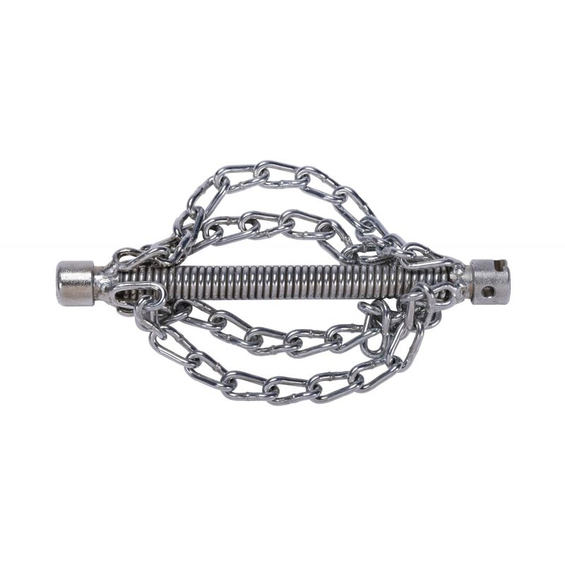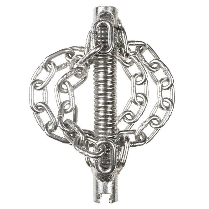 Цепная насадка для механической очистки канализационных труб от жировых отложений и накипи. Конструкция без центрирующего кольца обеспечивает улучшенное прохождение изгибов труб.