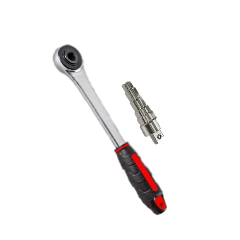 Универсальный комбинированный ключ для монтажа и демонтажа радиаторных ниппелей и коротких крановых удлинителей. С трещоткой.