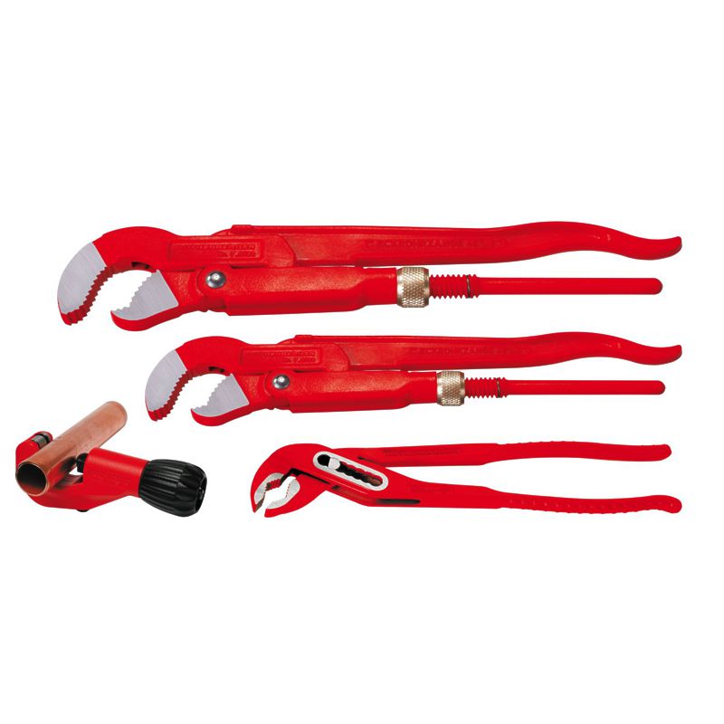 Набор с 4-мя предметами: трубные ключи Super S 1"-1.1/2", сантехнические клещи Wapu 10", труборез Tube Cutter 35