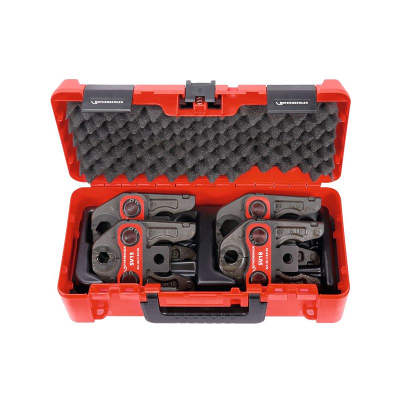 Комплект пресс-клещей Rothenberger Standart из прочного проверенного материала с высоким качеством изготовления, для обжима пресс-фтингов диаметром до 40 мм (пластиковые системы) или до 54 мм (металл).