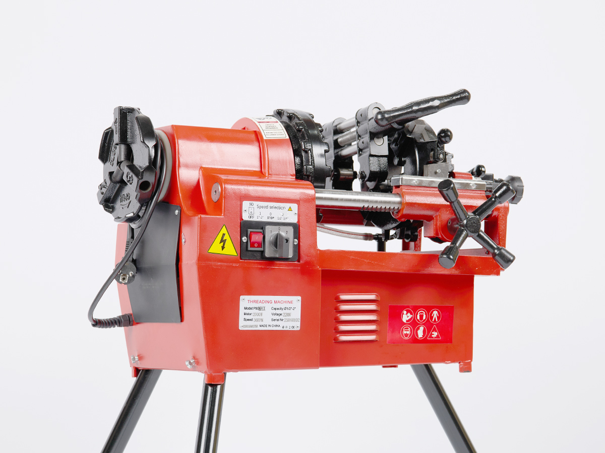 Станок предназначен для нарезки правой трубной резьбы диаметром от 1/2" до 2" с высокой точностью профиля. Оснащён асинхронным двигателем мощностью 2 кВт, обеспечивающим стабильный крутящий момент при максимальной нагрузке.